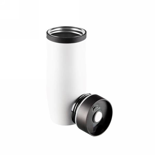 Termos 420 ml, posiada sitko zatrzymujące fusy, podwójne ścianki ze stali nierdzewnej z próżnią między ściankami, cyfrowy wyświetlacz temperatury napojów na wieczku, klasa termiczna: 4 +leakproof