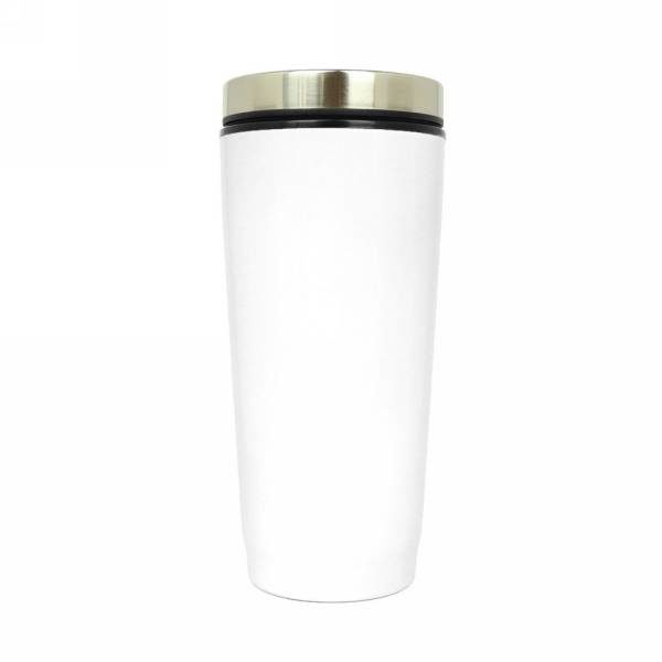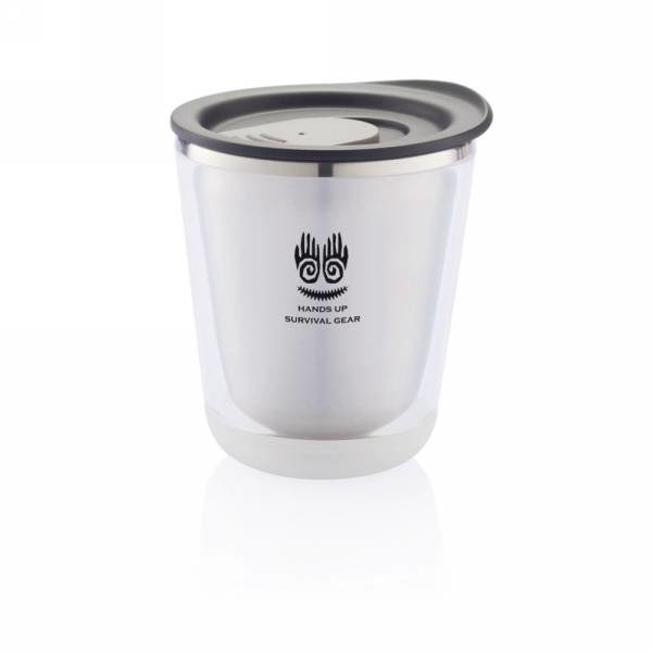 Geometryczny kubek podróżny 300 ml, plastikowe wnętrze, stal nierdzewna na zewnątrz, wyłącznie mycie ręczne