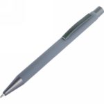 Ball pen with coloured, rubber barrel and grey parts, mirror surface after engraving