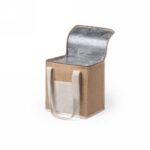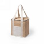Cooler bag with handles and front pocket, zipped main compartment, made of laminated jute