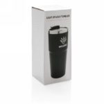 Double wall tumbler. 304 SS inside and ABS plastic outside. Engrave your logo and when picked up and shaken, the tumbler will light up your logo. Including 2 CR2032 cell battery Content: 500 ml.