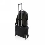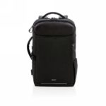 This carry-on travel backpack is intended for overnight or weekend trips. It’s designed with a padded 17″ laptop compartment to protect your device. This style has the capacity of a trolley without the weight of the wheels and handle, plus using a backpack makes you more mobile, hands-free and simplifies your travel experience. Leave your wheels at home and travel easily. Including trolley strap, water bottle side pocket and USB output. Top quick access pocket, front zippered pocket and RFID protected pockets.