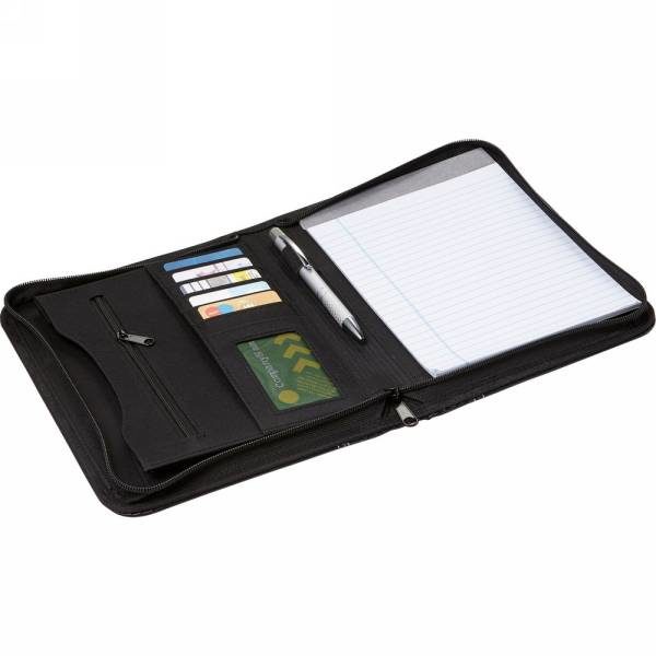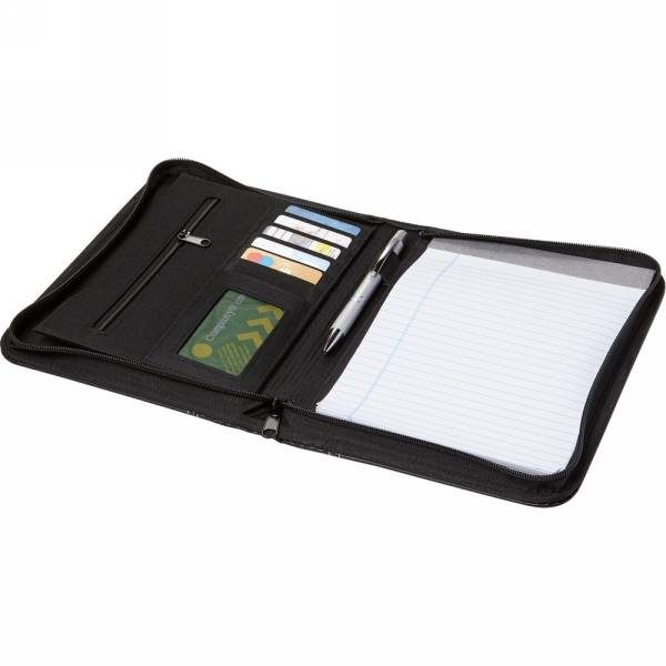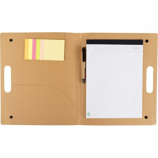 Conference folder (approx. A5) with notebook (70 lined sheets) and handle, 25 sticky notes 10 x 7,5 cm, 125 mini sticky notes 7,5 x 1,5 cm, recycled cardboard ball pen included