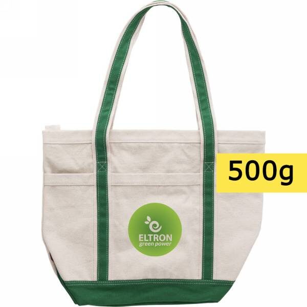 Cotton shopping bag, zipped main compartment, pocket inside