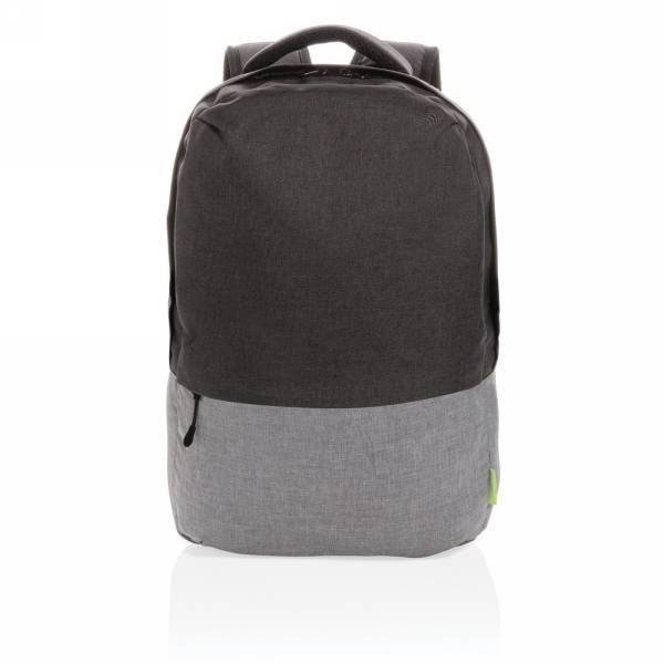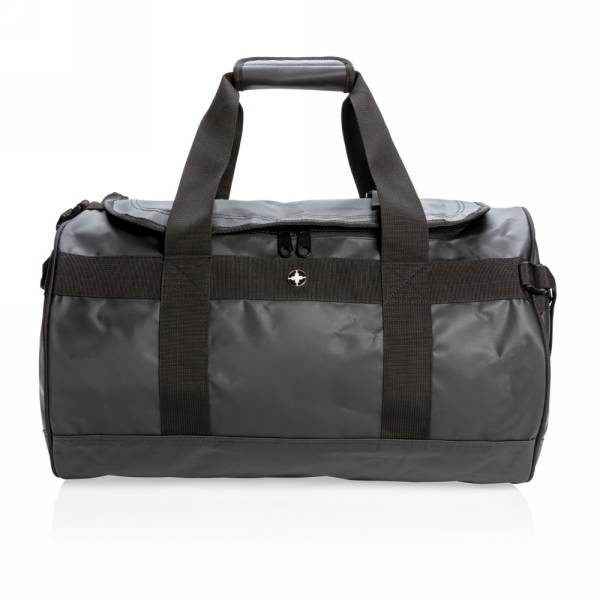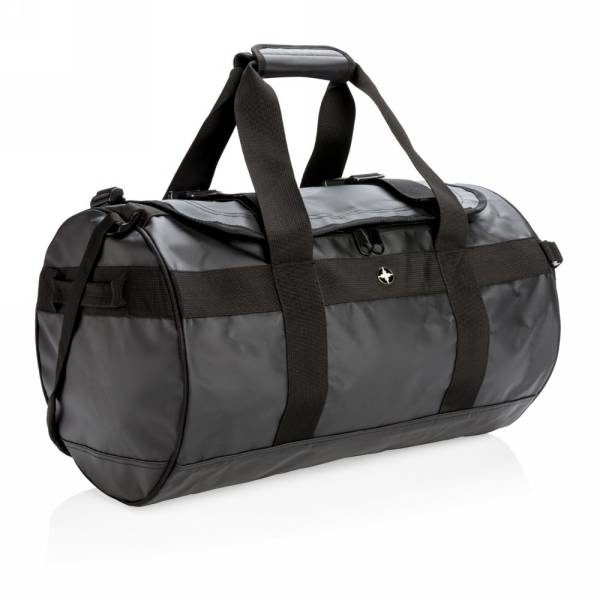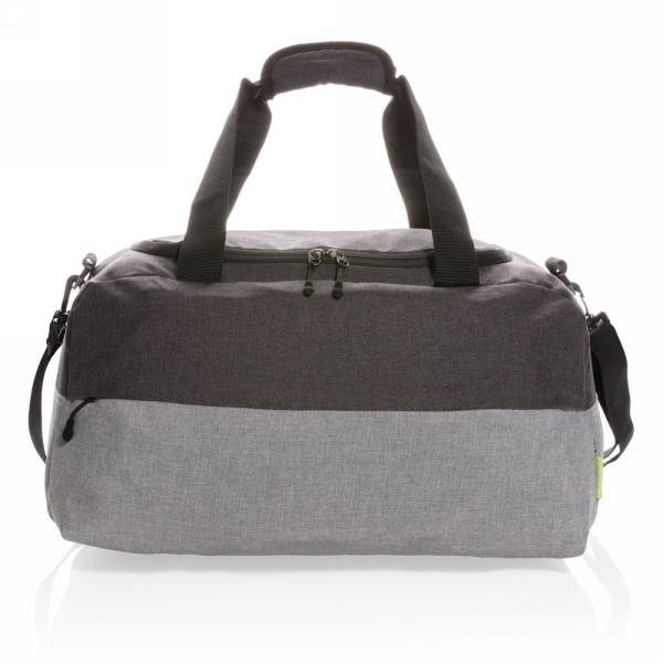 Perfect as a carry-on bag or to pack for an overnight trip. This weekend bag is made of reused plastic bottles, so not only stylish in two tone grey but also sustainable. The bag features a U-shaped top opening for all your gear, one large front pocket for quick access to your belongings and a RFID pocket for your passport and wallet. A top handle and a removable shoulder strap provide versatile carrying options. PVC free.