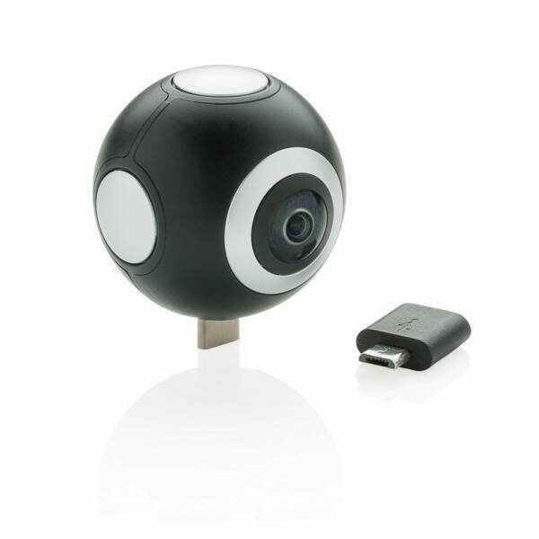 Make stunning 360 degree HD photos and videos with this 360 camera that can easily be placed on any Android tablet or phone. The free APP allows you to stream your 360 degree content live on social media like Facebook, Twitter, Instagram or YouTube. You can also edit your photos and videos and you can even create your own VR movies. A micro USB connector is included which can be replaced for a type C connector for the latest generation Android devices. Resolution: video 2K (2048x1024) Pictures: 3K (3508x1504)