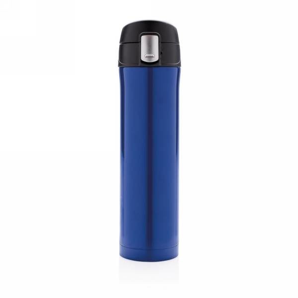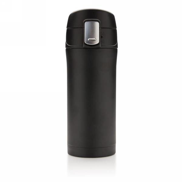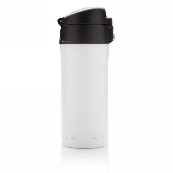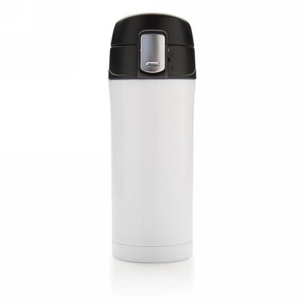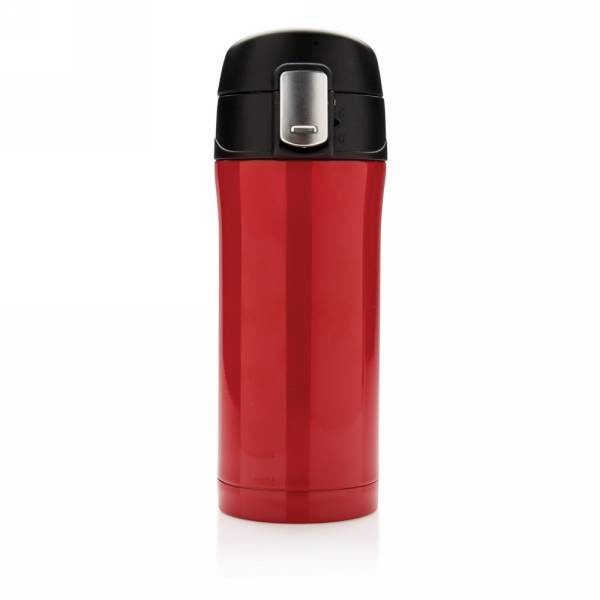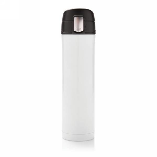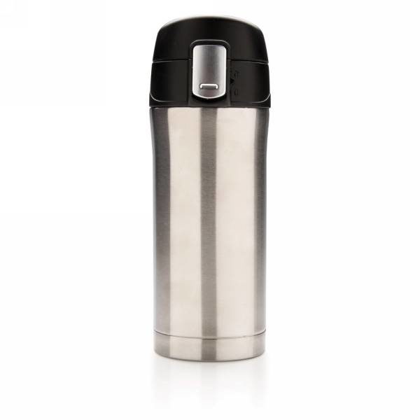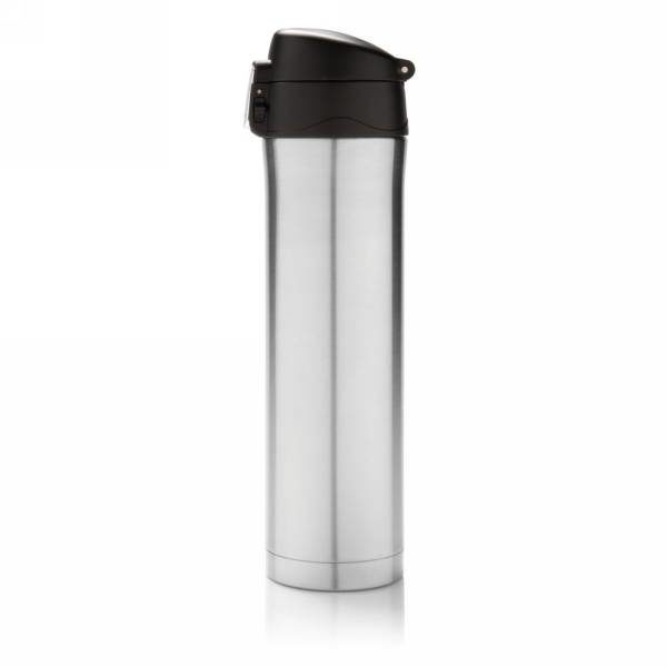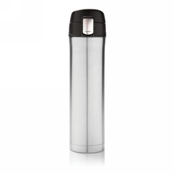 Double wall stainless steel vacuum flask that keeps your drink warm for up to 5 hours or cool up to 15 hours. The lid is lockable and therefore avoids any risk of leaking or spilling. The lid is easy to keep clean for optimal hygiene and can even be washed in the dishwasher. The unique design of the flask allows you to drink conveniently and safely with one hand directly from the flask. The size of the flask is suitable to place in any car drink holder. Capacity: 450 ml.