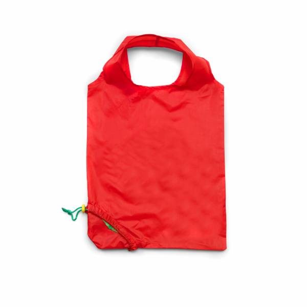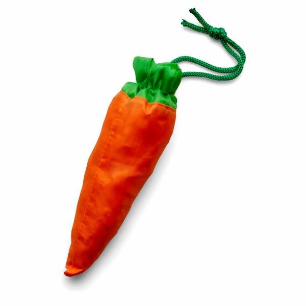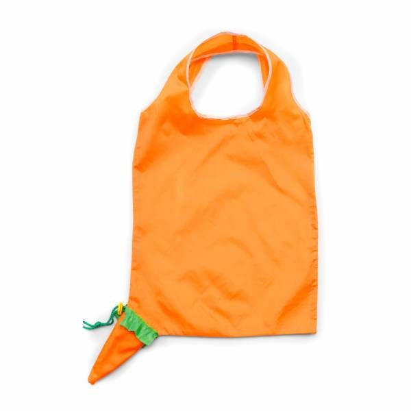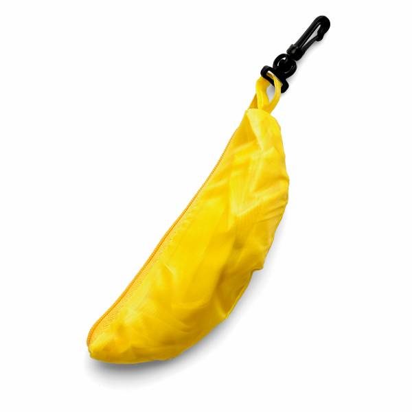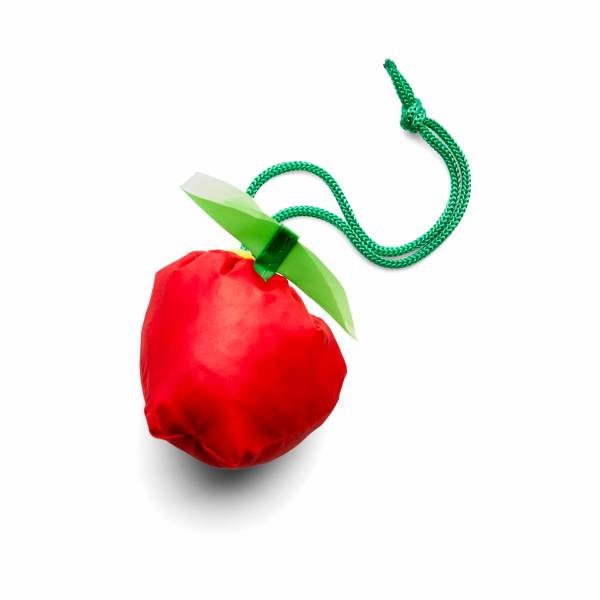 Foldable shopping bag supplied in different shaped pouches (05-apple, 07-carrot, 08-banana) with belt clip attachment