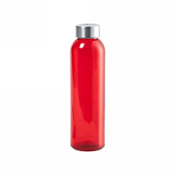 Glass sports bottle 500 ml with pouch, metal lid with handle, only for cold drinks