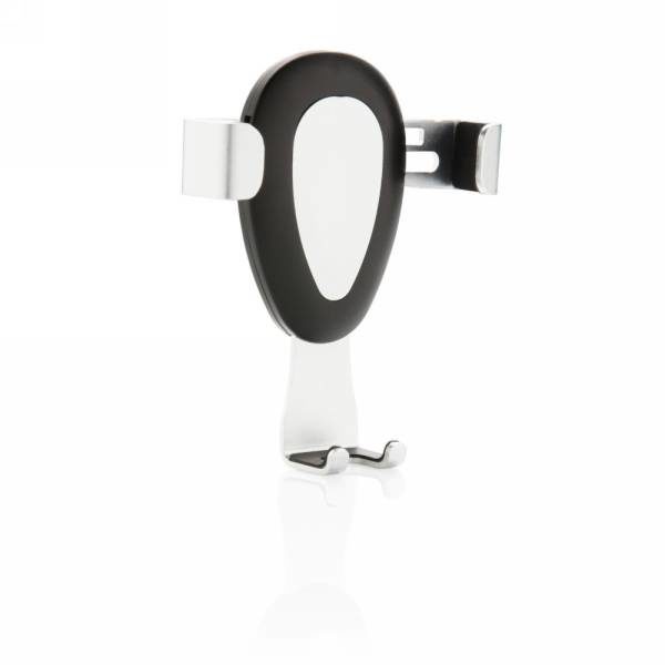 Universal phone holder; easy to attach to the air vent of your car and safe for one-hand operating. The adjustable aluminium alloy grip arms will keep your phone in place even on bumpy roads due to its clever and strong design. The bottom arm has a wire hole so you can charge your phone while driving. Compatible with both horizontal as vertical air slides; suitable for all 4-6” phones.
