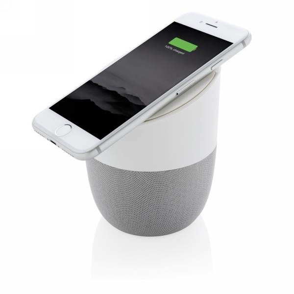 Modern 3-in-1 function 5W speaker with integrated phone stand and wireless charger. Simply place the phone on the 5W wireless charger to charge your phone while listening to your favourite music. The stand has high end nano plastic to avoid your phone from sliding off. The item comes with an 2.000 mAh battery to play music up to 7 hours. In case you want to charge your phone while listening to music simply connect the included 150 cm micro USB cable to your USB power outlet. BT 5.0 for easy connection. Input: 5V/2A, wireless output: 5V/1A 5W.