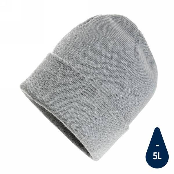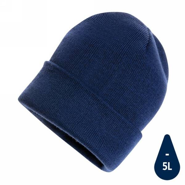 No greenwashing, but telling a true story about sustainability! This Impact collection is made with AWARE™ tracer. With AWARE™, the use of genuine sustainable fabric materials and water reduction impact claims are guaranteed, by using the AWARE disruptive physical tracer and blockchain technology. Save water and use genuine sustainable fabrics. With the focus on water 2% of proceeds of each sold Impact product will be donated to Water.org. This beanie has saved 5 litres of water! A simple and comfortable beanie suited for anyone. A classic fold over beanie for an effortless look that will keep you warm during the cold days. The beanie uses unique Polylana® yarn. Polylana® is made from a mixture of virgin and recycled materials to create an innovative fibre with characteristics similar to acrylic or wool fibre. Polylana® is a low-impact alternative to 100% acrylic fibre using less energy and water. One size fits all.