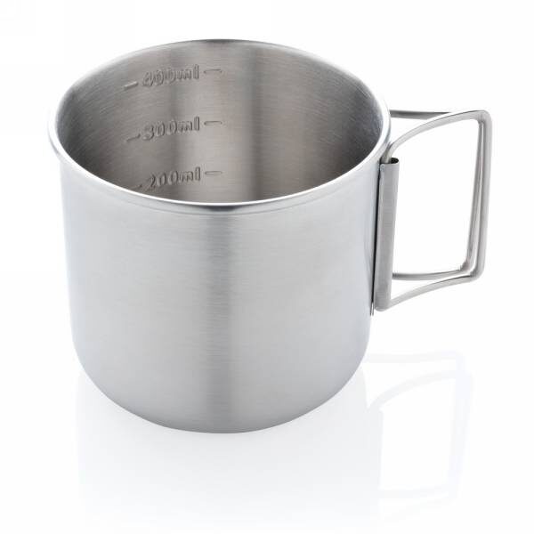 Lightweight and versatile, this stainless steel cup is ideal for taking with you on hikes. With its foldable handles the cup will use up less space. Made of high quality stainless steel. Capacity 400 ml. Do be careful with hot beverages as the cup will get hot.