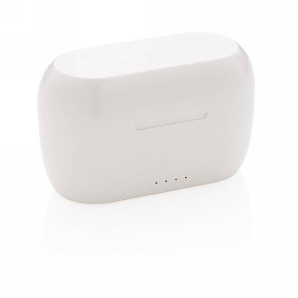 Ultimate freedom when listening to your music from your mobile device. These TWS earbuds come in a 300mah wireless charging case with an extra option to add a logo that will light up when the case is being charged. The earbuds are re-charged in 1,5 hours and have a playing time up to 3 hours. BT 5.0 for auto pairing with your mobile device and pairing the earbuds together. Operating distance up to 10 metres. Including PVC free TPE micro usb cable to re-charge the charging case. With pick up function to answer calls. Including 3 size ear tips to fit all.