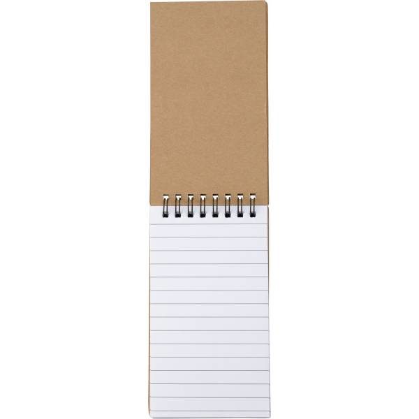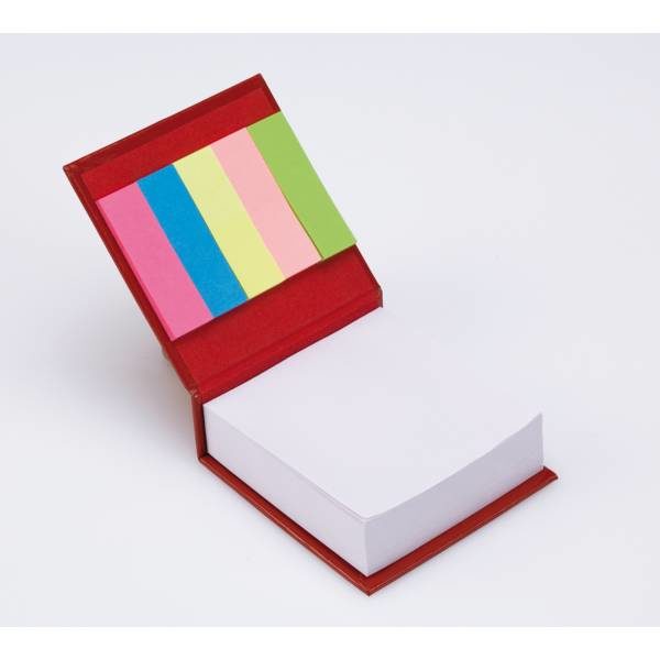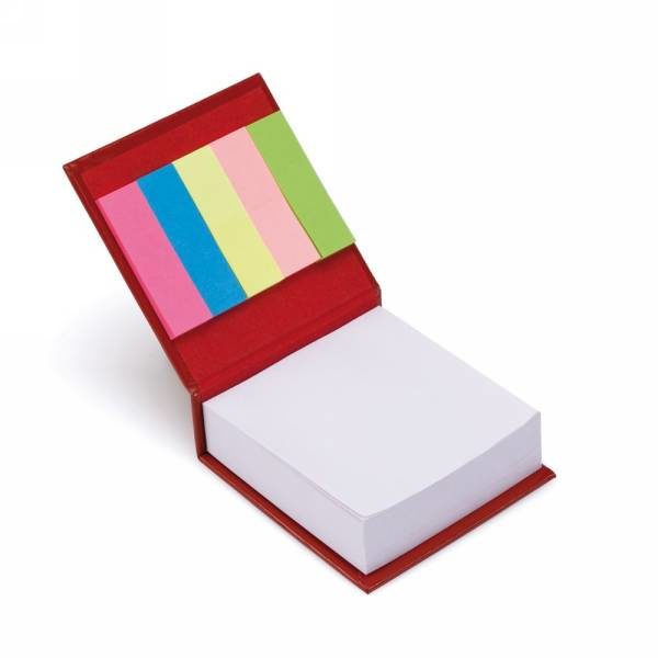 Memo holder with notebook (approx. A6, 50 lined sheets), sticky notes 1,5 x 4,4 cm (15 pcs), sticky notes 1,4 x 4,4 cm (75 pcs), recycled cardboard ball pen included