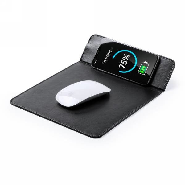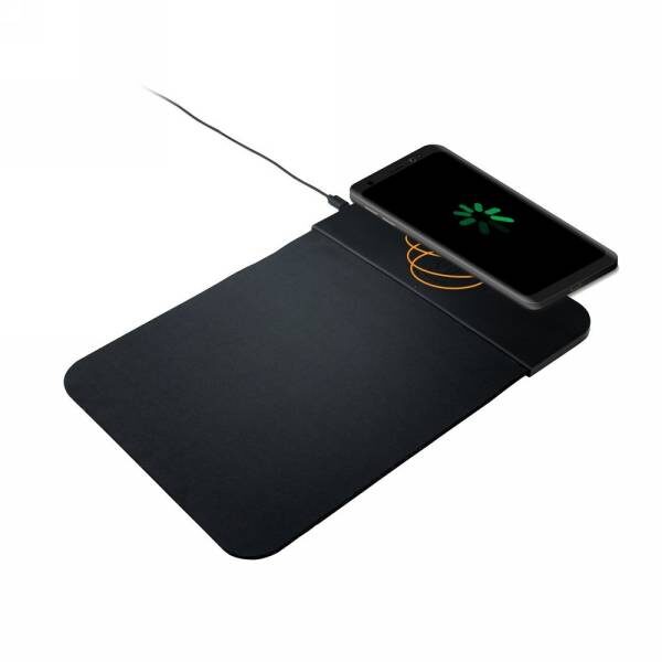 PU mousepad with integrated wireless charging pad to charge all mobile devices that support wireless charging (Android latest generations, iPhone 8 and up). The wireless charging part can be also used as stand for your mobile device. Including 40 cm micro USB cable to connect the mousepad to the USB port of your computer. Input: 5V/1A. Wireless output: 5V/1A 5W.
