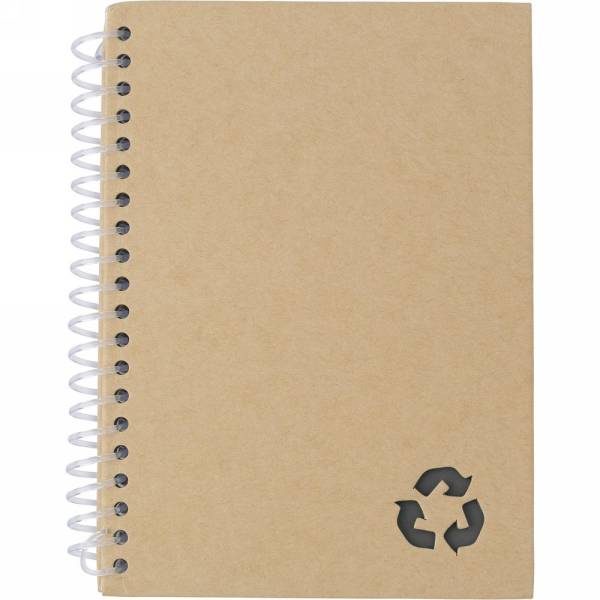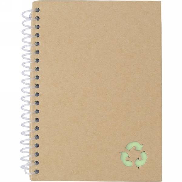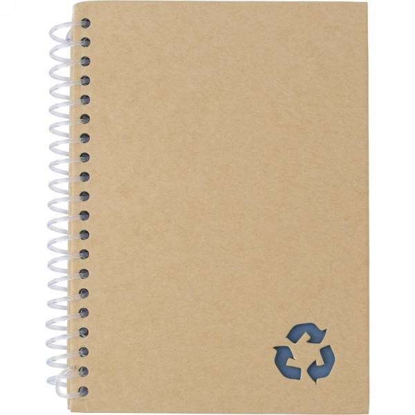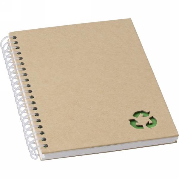 Notebook (approx. B6, 72 lined sheets made of stone paper), hard cover made of recycled cardboard, spiral binding. Stone paper is made of mix of 80% calcium carbonate and 20% HDPE, which makes it resistant to splashing, dirt and tearing. The product is environmentally friendly, because water and wood are not used during production.