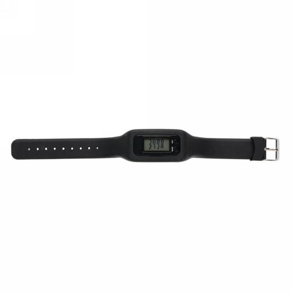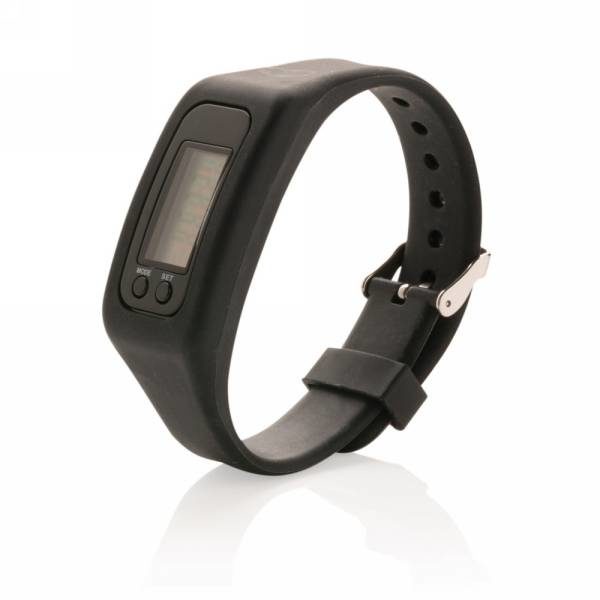 Pedometer bracelet with ABS pedometer unit and acrylic screen. The armband is made out of comfortable silicone material. The bracelet is adjustable to fit various wrist sizes and therefore suitable for all users. The bracelet counts steps, calories burned and distance travelled. Includes batteries for immediate use. Battery life on normal usage about 1 year.