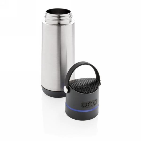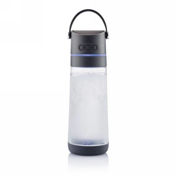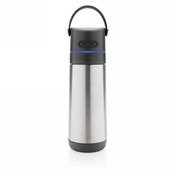 Party on in 2018! Durable leak-proof vacuum bottle with 304 stainless steel inside. The lid contains includes a 3W wireless speaker and a mood light. The carrying strap makes it easy to attach the lid to a hook or tree, so you can start a party anywhere. It is perfect for outdoor use. Content 500 ml. Registered design®
