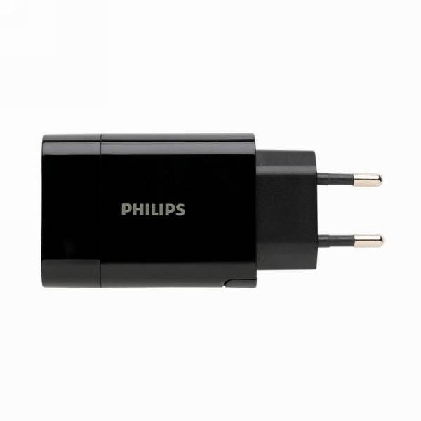Philips super fast 30W wall adapter with power delivery. The charger comes with one USB 2A output port and one type C output that support power delivery fast charging. This will allow you to charge your mobile device in under one hour if it supports PD charging. Input 100-240V; Type-C output (PD): 5V/3A,9V/2A,12V/1.5A; USB output: 5V/2.4A (max12W) Total Power: 30W. Packed in Philips giftbox.