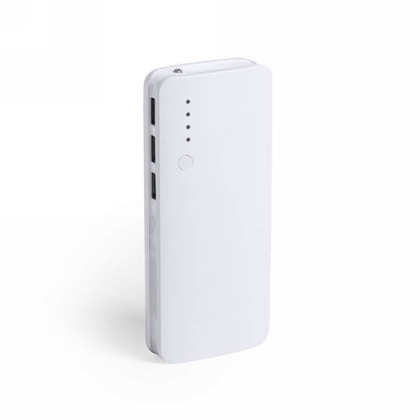Power bank 20000 mAh, 2 USB outputs and USB type C output, can charge three mobile devices simultaneously, USB type C input, 4 diodes indicating power level, cable not included