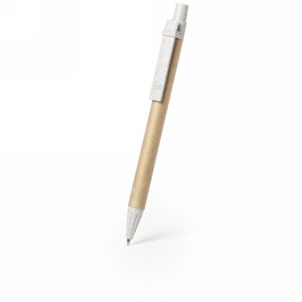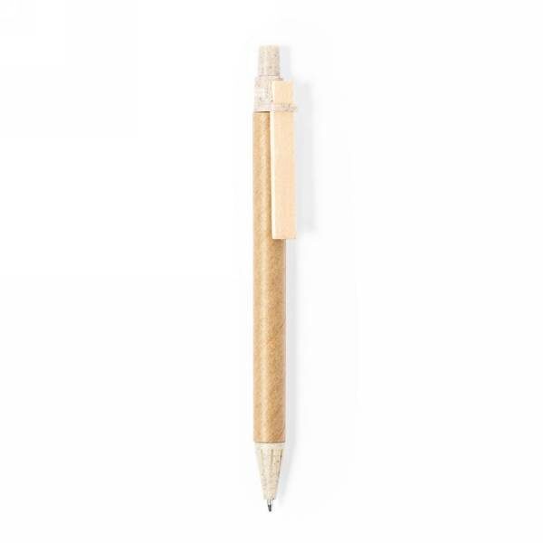 Ball pen with recycled cardboard barrel and wheat straw coloured details