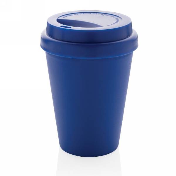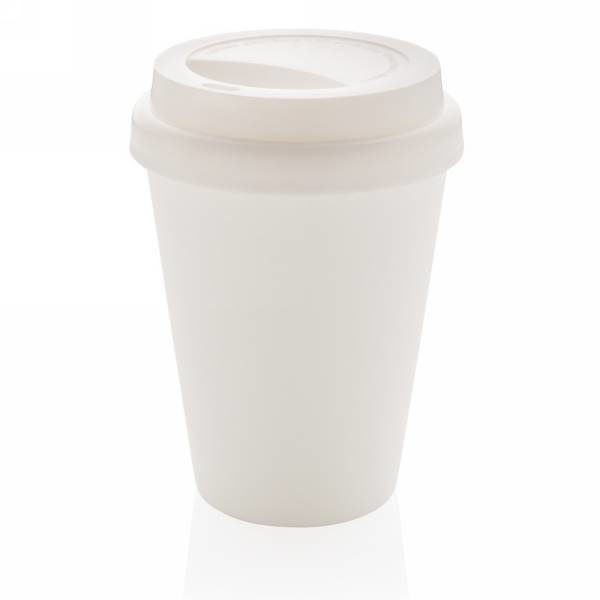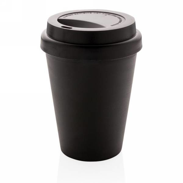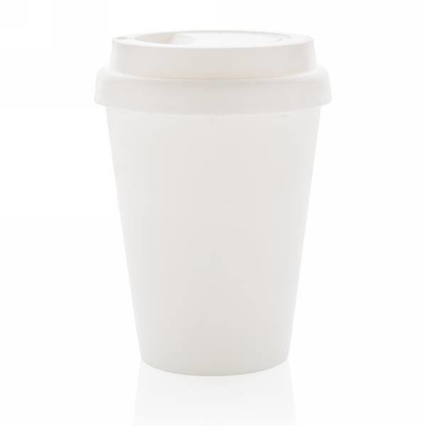 Stop single use! Bring your own cup and join the reuse revolution so you can contribute to a disposable free world. These lightweight and durable cups are perfectly suited to take your coffee on the go. The coffee cup is double wall, so it will keep your beverage warmer for longer for you to enjoy. The cups are resusable and made of 100% recyclable friendly PP material. 100 degree Celsius food safe approved. The cups have a screw lid to prevent the lid from falling off while drinking. Hand wash only. Content: 270 ml.