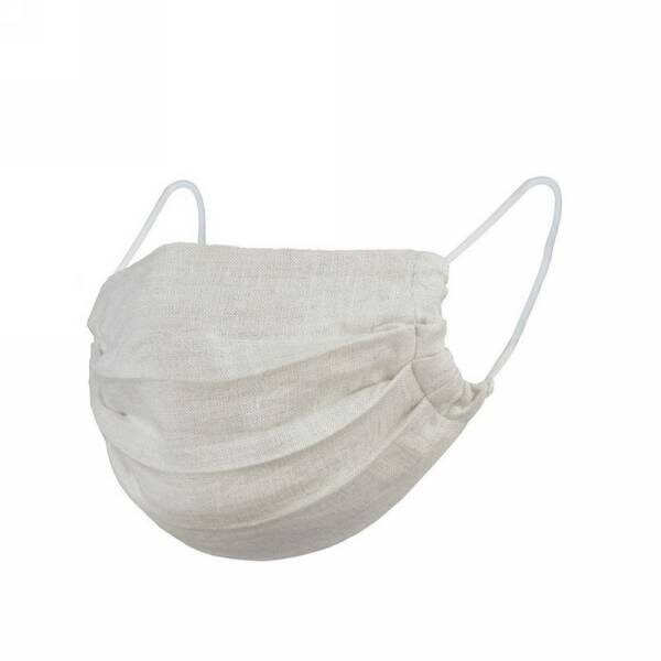 Reusable face mask, non-medical, double layer, made of linen, first wash temperature: 30 degrees Celsius, subsequent washes temperature: 40 degrees Celsius, water sterilization at 100 degrees Celsius, ironing up to 200 degrees Celsius, OEKO-TEX certificate standard 100, flexible ear ropes for better comfort of use (made in Europe)