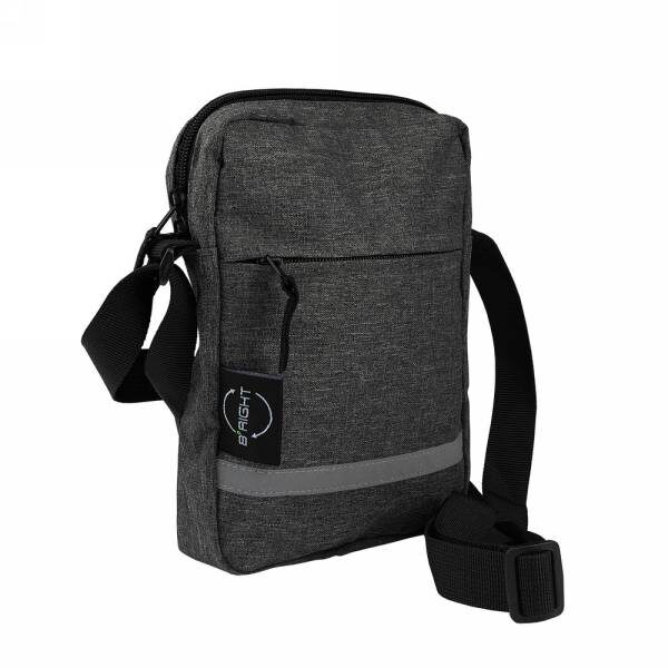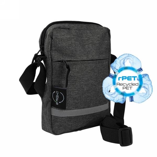 B'RIGHT shoulder bag, made of RPET, zipped main compartment and front pocket, main compartment with 2 inside pockets (one mesh pocket), adjustable shoulder strap (65 - 120 cm), front pocket with reflective stripe (for promotional use only)