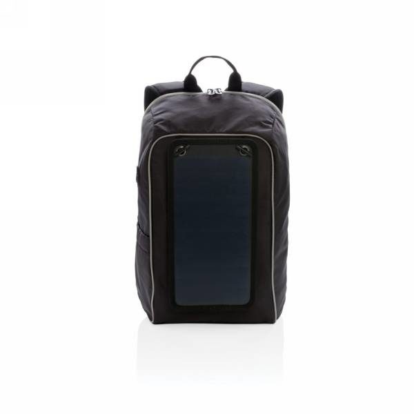 Hiking backpack with 7W solar panel power. It can charge an iPhone in 3-4 hours. Perfect for charging your phone, camera or powerbank on the go. The solar unit has 2 USB outputs for charging 2 phones simultaneously. The solar unit does not use a battery, the sunlight is transferred directly into energy. PVC free.