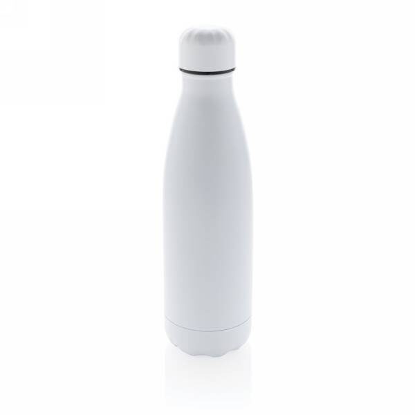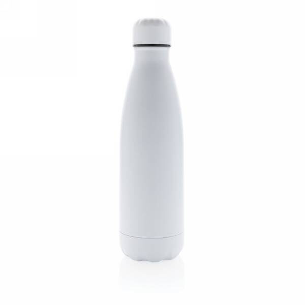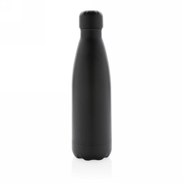 Elevate your daily water intake with this solid colour vacuum insulated stainless steel bottle. The bottle keeps chilled beverages cold for up to 15 hours and hot drinks warm for up to 5 hours. With a base that fits in most cup holders, this sleek looking water bottle will keep you hydrated on the go wherever you are. Capacity 500ml.