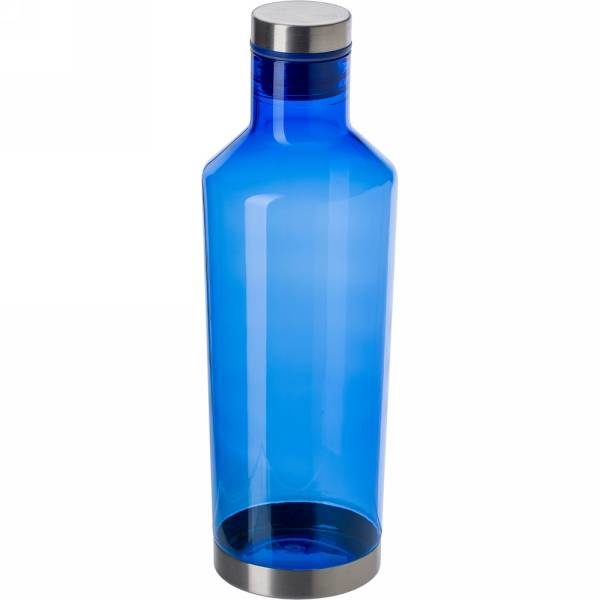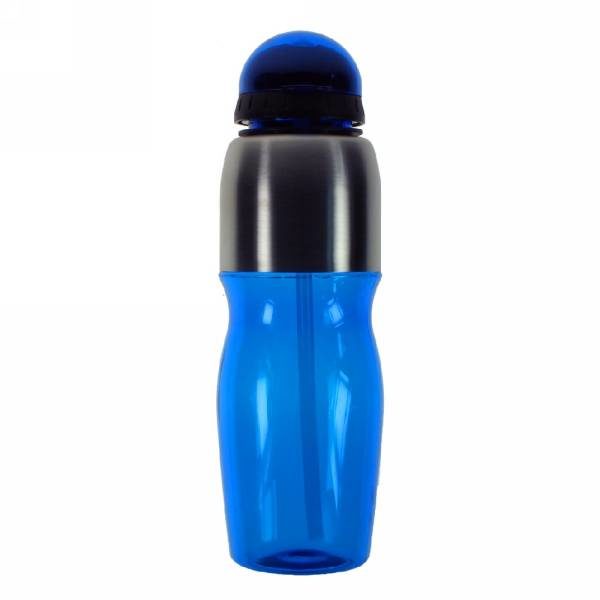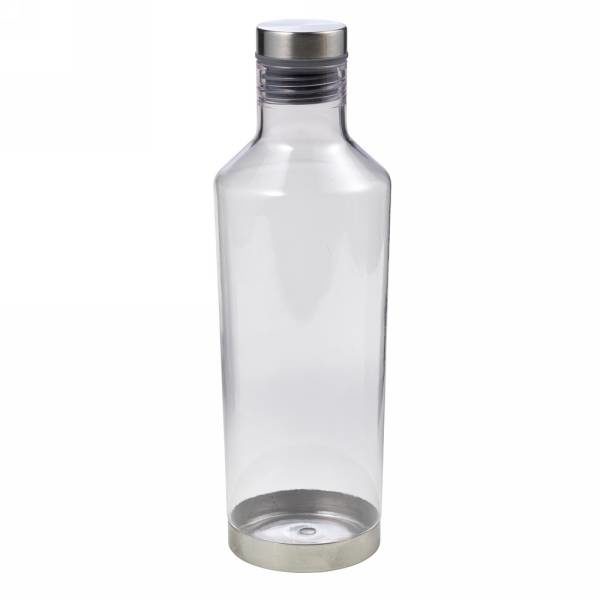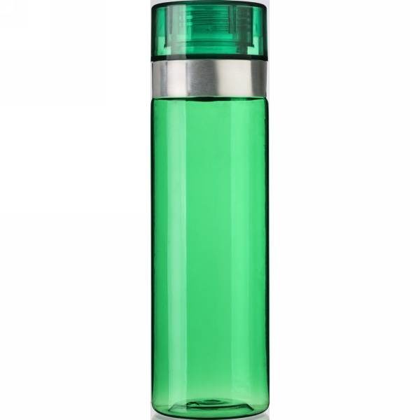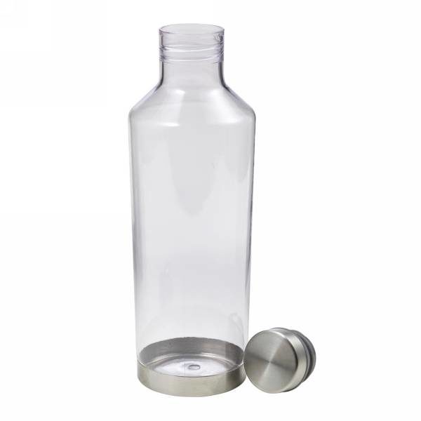Water bottle 850 ml with screw cap, metal ring around bottom and screw cap, BPA free