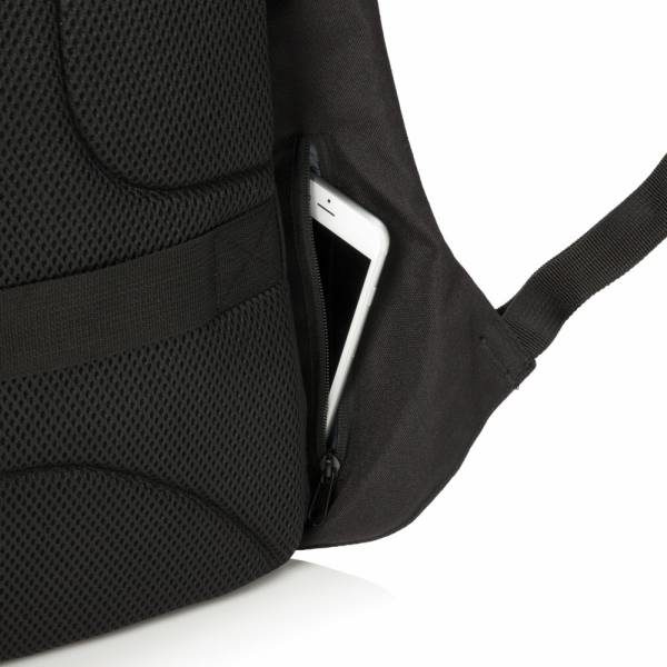 Anti pickpocket 15.6” laptop backpack made out of 1680D and 600D polyester with cut-proof material, hidden zipper closures and secret pockets will keep all your belongings safe while commuting. Connect your powerbank easily to the integrated USB charging port and charge your phone or tablet on the go. Night safety due to reflective safety strips. With trolley strap. PVC free. Registered design®