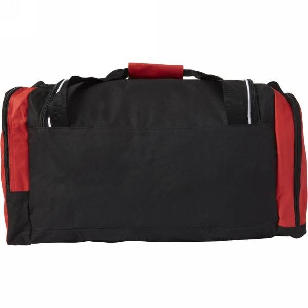 Sports, travel bag with front zipped pocket, adjustable shoulder strap and mesh pocket on both sides