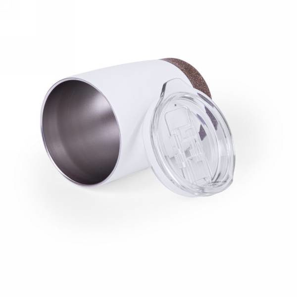 Travel mug 360 ml with cork detail, double walled, stainless steel inside and outside, BPA free