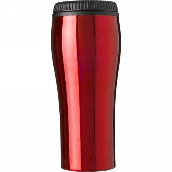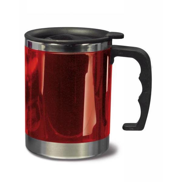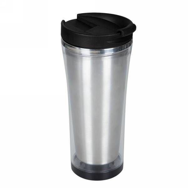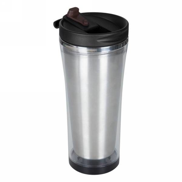 Travel mug 390 ml, double walled, stainless steel interior, plastic lid and handle