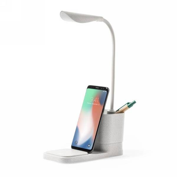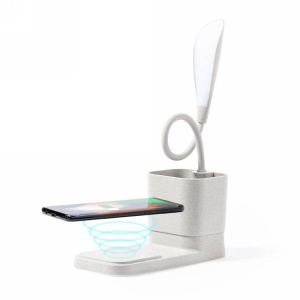 Wheat straw desk lamp, wireless charger 10W, phone stand, pen holder V8327-00