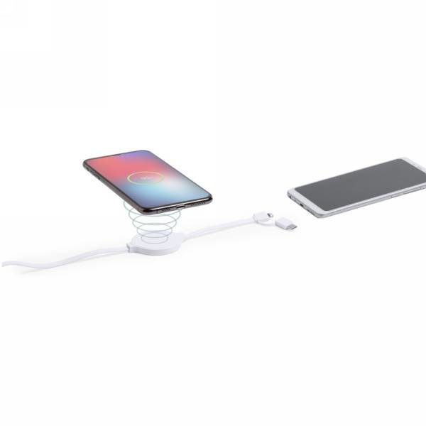 "1. Simply place the powerbank in the base to charge it via induction. This guarantees you that the powerbank will always be fully charged when you need it. When placed in the base you can place your phone on it to charge it. The powerbank allows you to charge on the go via the 5W wireless charger or via the type C output. The item comes with a USB C to USB A adapter to use USB A cables. Wireless charging compatible with all QI enabled devices like Android latest generation, iPhone 8 and up USB Input with integrated cable 5V/2A; Type-C Input 5V/2A; Type-C Output: 5V/2.1A; Wireless Output 5V/1A. Including 4 LED indicators to show the remaining capacity. Including integrated 100 cm TPE PVC free micro usb cable."
