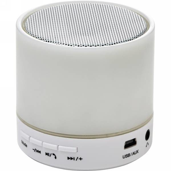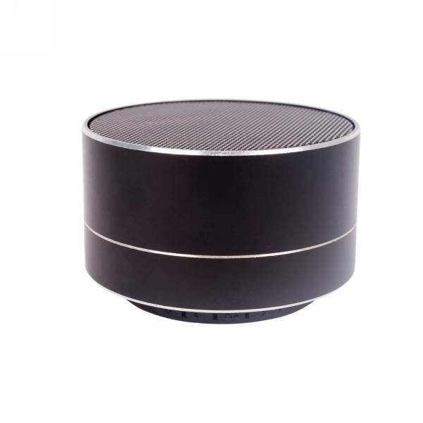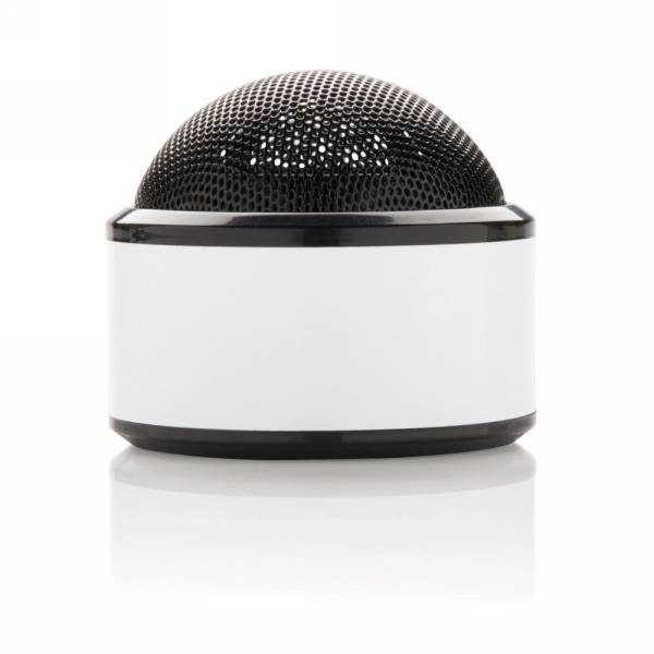 Wireless speaker with 3W speaker and 350 mAh battery. Because of its clever design the music will be played in all directions. Aluminium body and metal grill, the bottom of the speaker has rubber strips for improved sound quality and grip. Playing time up to 3 hours on one single charge and connection distance up to 10 metres. Includes micro cable to charge the speaker the device to your mobile phone without wireless connection. Compatible with all mobile phones.