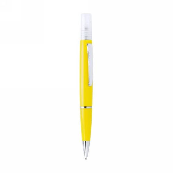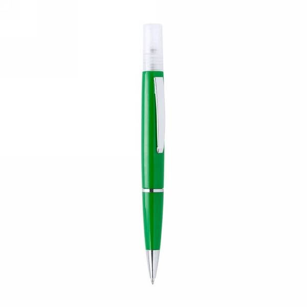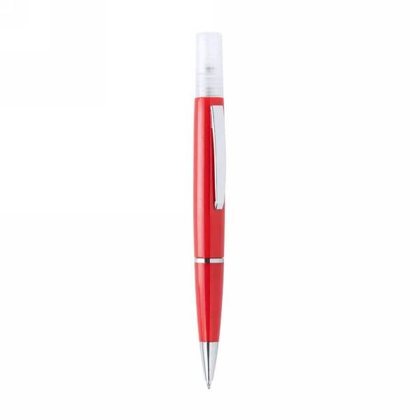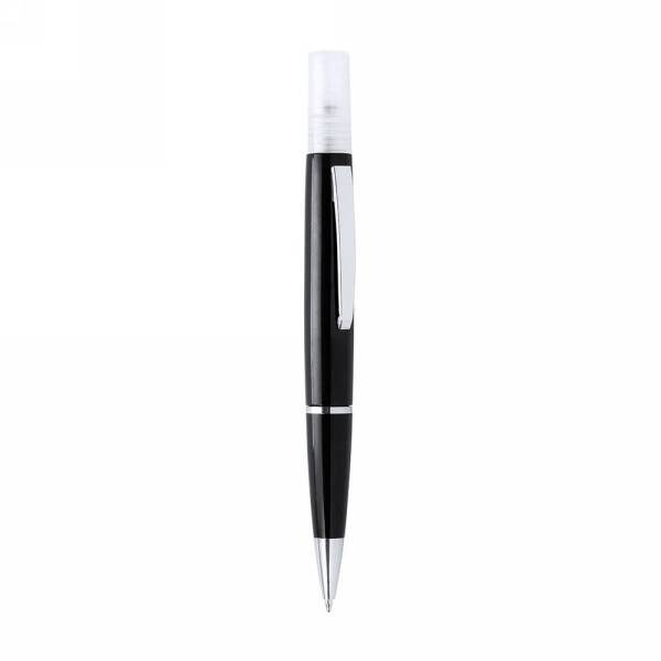 Ball pen with refillable atomizer (liquid not included) and cap, shiny finish, spray capacity 10 ml