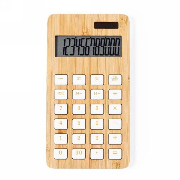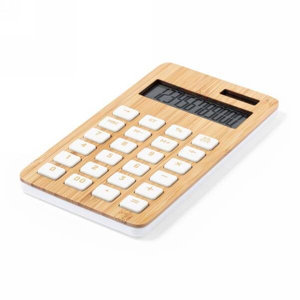 Bamboo calculator with 12 digit display, solar panel, automatic shut-off system