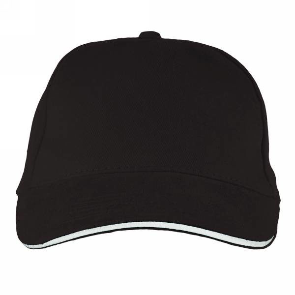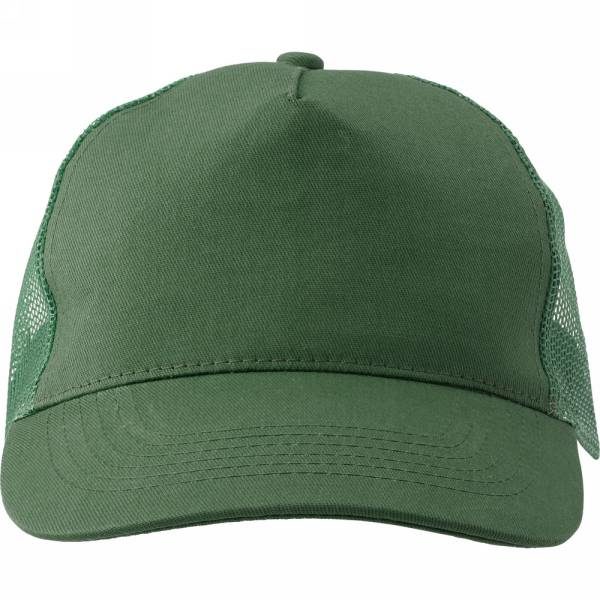 Cap with 5 panels, adjustable plastic fastening, mesh back panels