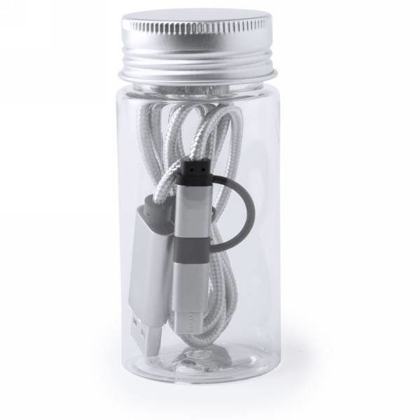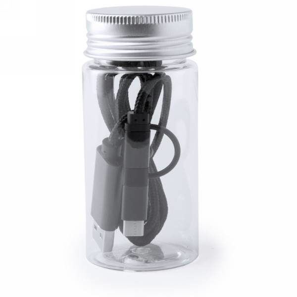 Charging cable with 3 plugs: USB, USB type C and 2 in 1 plug (micro USB and compatible with iOS devices), 100 cm, in transparent case