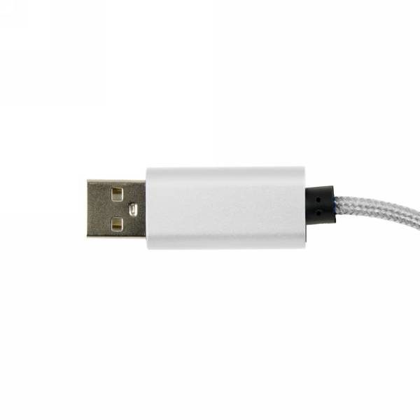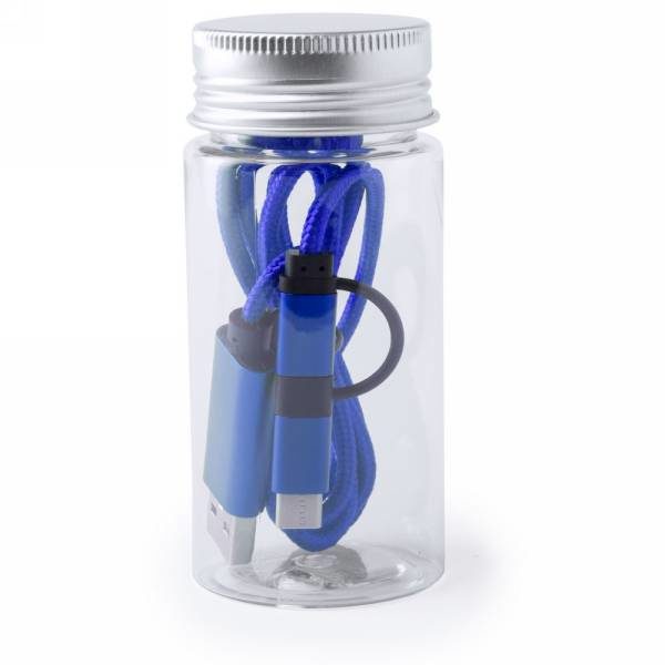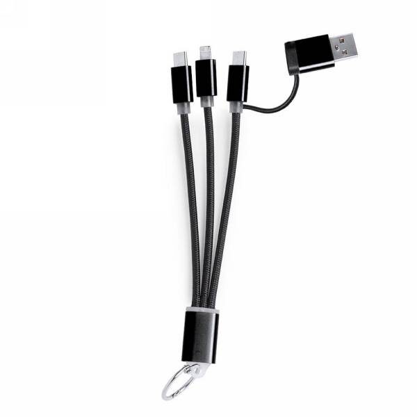 Charging cable with 4 plugs: USB, USB type C, micro USB and compatible with iOS devices, with carabiner, backlight effect after engraving