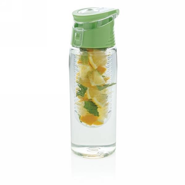 Trendy infuser bottle to flavour your water with your favourite fruit or herbs. The body is made out of tritan material so it is scratch proof and durable. The lid is made out of ABS and has a locking system so you can take your flavoured water wherever you go. Capacity 700 ml.