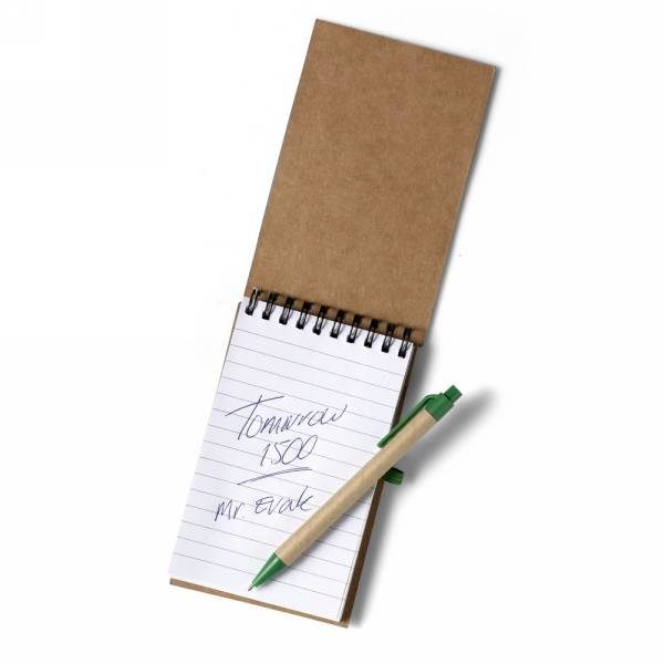 Notebook (approx. B6, 72 lined sheets made of stone paper), hard cover made of recycled cardboard, spiral binding. Stone paper is made of mix of 80% calcium carbonate and 20% HDPE, which makes it resistant to splashing, dirt and tearing. The product is environmentally friendly, because water and wood are not used during production.