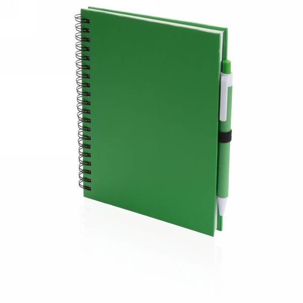 Notebook (approx. B6, 72 lined sheets made of stone paper), hard cover made of recycled cardboard, spiral binding. Stone paper is made of mix of 80% calcium carbonate and 20% HDPE, which makes it resistant to splashing, dirt and tearing. The product is environmentally friendly, because water and wood are not used during production.