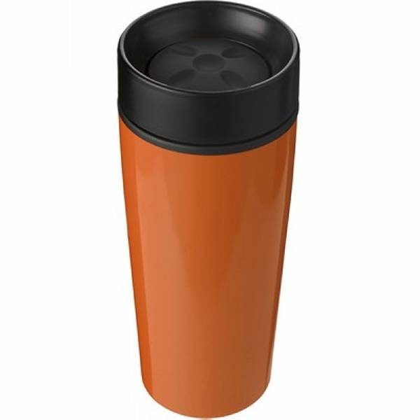 Travel mug 450 ml, leakproof lid, plastic interior, suitable for single hand operation, suitable for cold and warm (not hot) drinks, BPA free