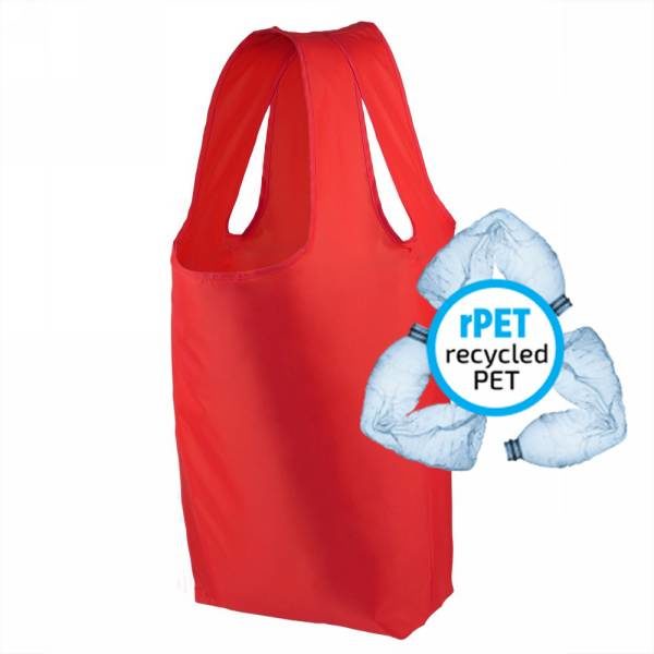 RPET shopping bag with long handles, foldable, large main compartment, wide handles for comfortable carrying, durable bottom without seams, fashionable design