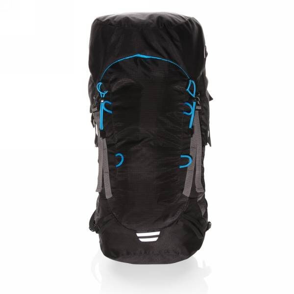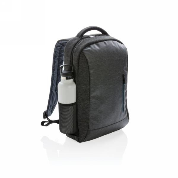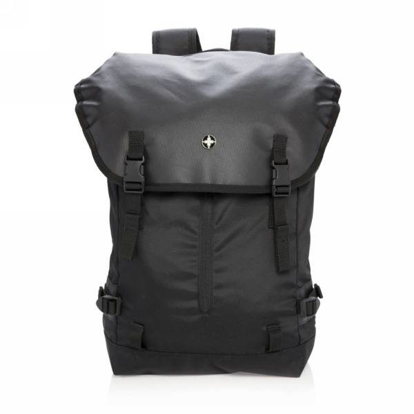 Streamlined styling and intelligently placed features add up to a minimalist footprint with this 600D & 1680D polyester backpack. 1 big main compartment sized to fit laptops with up to 17 inch displays. Second compartment with practical organization for everything else you need to carry. With side mesh water bottle pocket. PVC free.